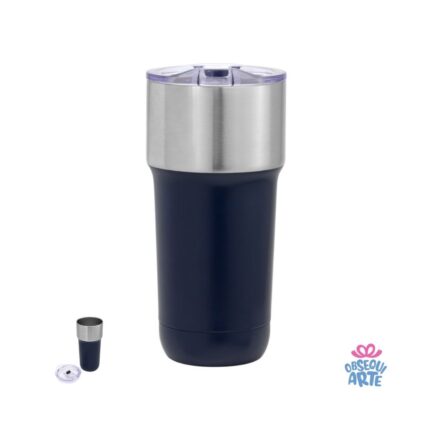 Ø 9 x 16,5 cm. Capacidad 500 ml. Acero Inoxidable. Mug doble pared, sellado al vacío. Interior acero 304 y exterior acero 201. Tapa plástica a rosca con seguro hermético antiderrame. Pintura Powder Coat (pintura mas duradera y resistente a la corrosión y el paso del tiempo).Mantiene hasta 12 hs la temperatura de las bebidas calientes y 24 hs de las bebidas frías.